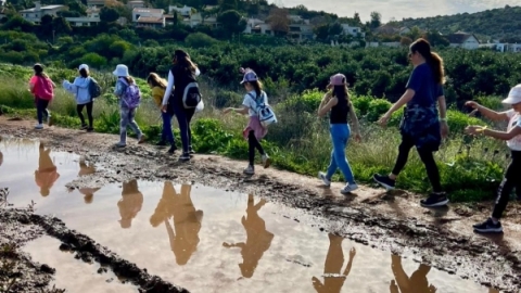 תלמידי כיתות ה' ו-ו' מבית חינוך אהרונוביץ', בית מיתר, יחדיו וצופית, קמו הבוקר, התארגנו ונסעו לבית הספר.