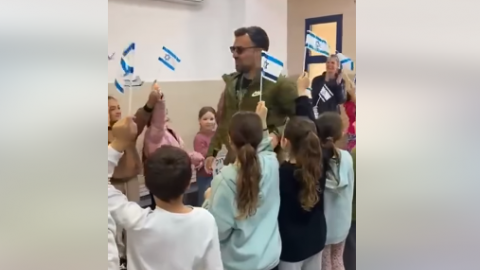 גיא מסה, מורה לחינוך גופני בבית חינוך אזורי צופית שבמועצה האזורית דרום השרון, חוזר לבית הספר אחרי 130 ימי מילואים וזוכה לקבלת פנים נרגשת מהתלמידים והצוות