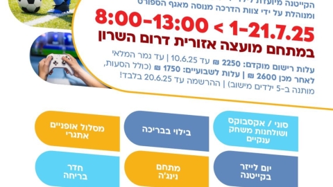 קייטנת ספורט ונופש קיץ 2025 לילדי.ות דרום השרון (למסיימי כיתות ד'-ו')