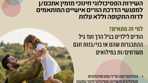 השירות הפסיכולוגי חינוכי מזמין אתכם/ן משרתי המילואים למפגשי הדרכת הורים אישיים ללא עלות