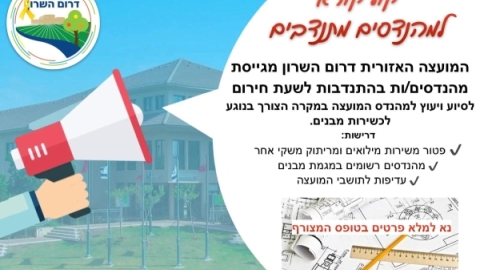 המועצה האזורית דרום השרון מגייסת מהנדסים/ות מתנדבים/ות לשעת חירום