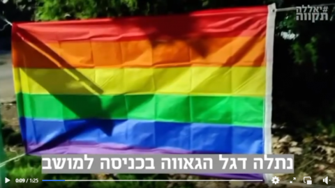 במושב מגשימים תלו את דגל הגאווה בכניסה לישוב