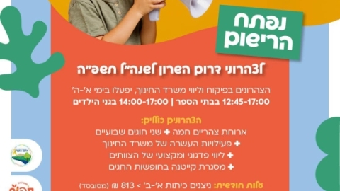 הרישום למעונות יום לשנת תשפ״ו החל ב- 16.02.25 וימשך עד למוצאי שבת ה-08.03.25