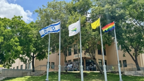 במושב מגשימים תלו את דגל הגאווה בכניסה לישוב
