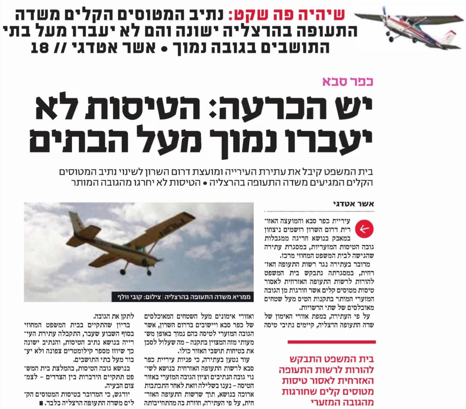 בית המשפט קיבלת את עתירת המועצה יחד עם עיריית כפ"ס נגד רשות התעופה האזרחית וקבע כי ישונו נתיבי הטיסה של המטוסים הקלים משדה תעופה הרצליה כך שימנעו מטיסה בגובה נמוך מעל בתי התושבים.