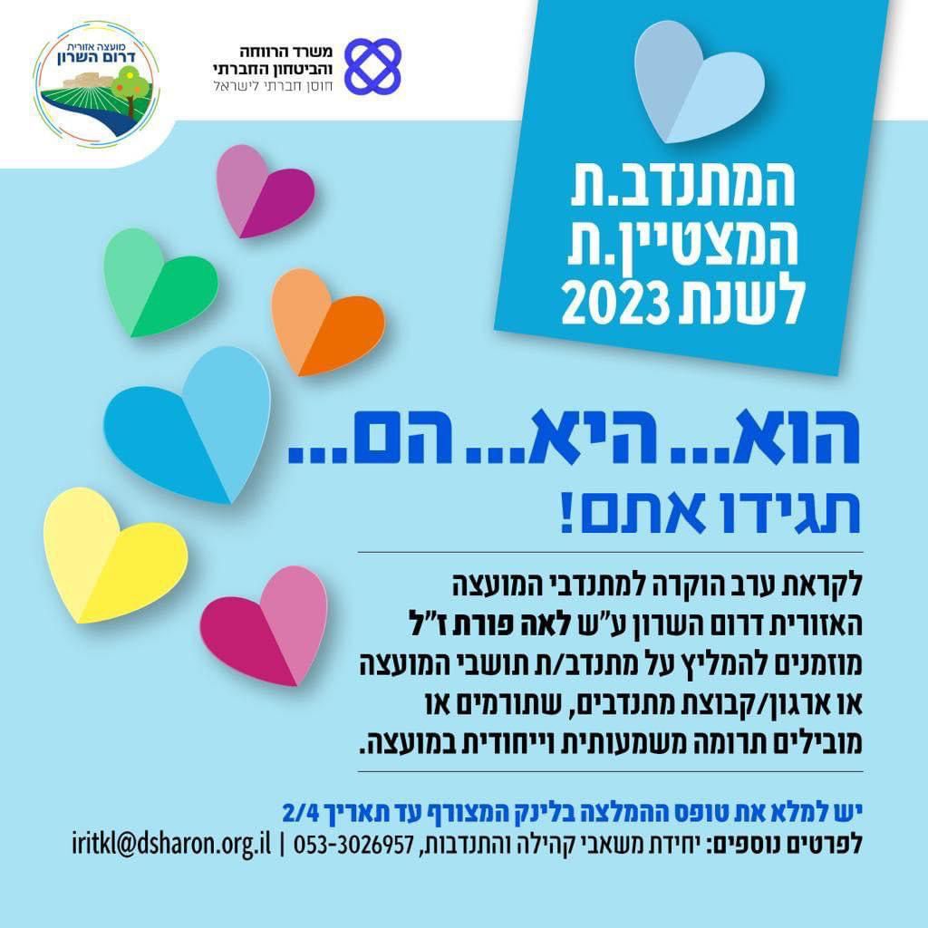 קול קורא לבחירת מתנדבים ומתנדבים מצטיינים לשנת 2023