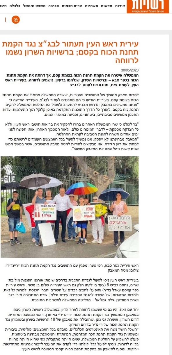 פרסומים על מאבק המועצה ורשויות נוספות בהקמת תחנות הכוח בשרון: