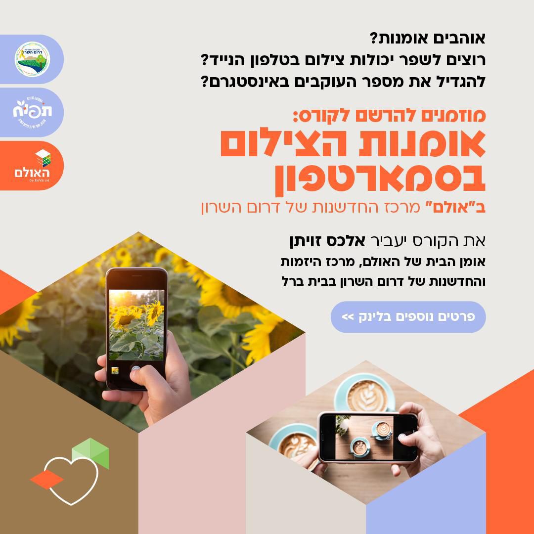 אומנות הצילום בסמארטפון- האולם, מרכז היזמות והחדשנות החינוכי קהילתי מזמין אתכם לקורס של יצירה חזותית עם האמן הרב-תחומי אלכס זויתן, שייקח אתכם למסע מרתק של ביטוי עצמי המשלב טכנולוגיה ואומנות. הקורס יתקיים בימי ראשון, החל מ-2.2.25. לפרטים נוספים ולהרשמה: